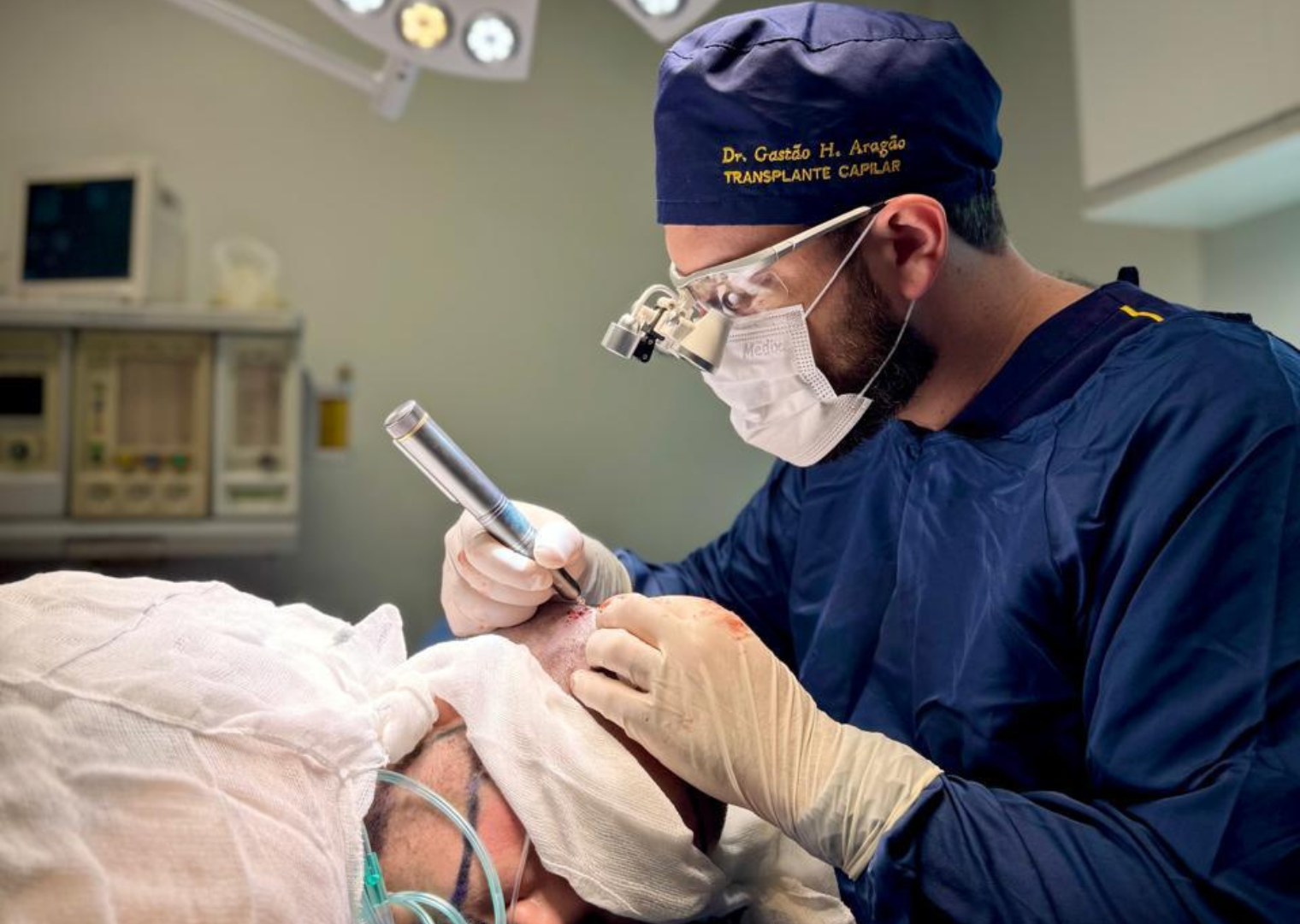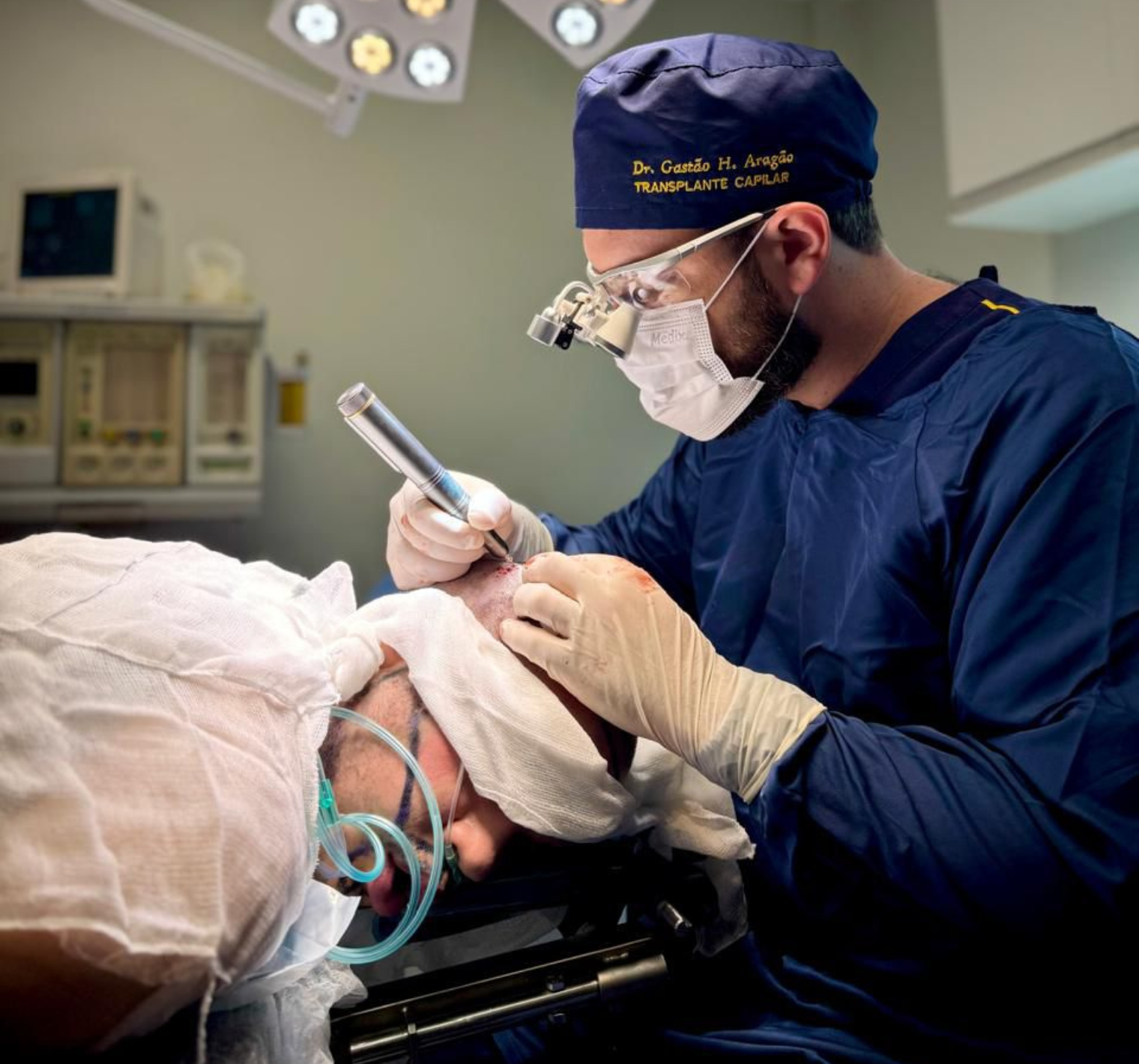 O transplante capilar realizado pelo Dr. Gastão Aragão utiliza a avançada técnica FUE (Follicular Unit Extraction). Esse método moderno é minimamente invasivo e consiste na extração de unidades foliculares saudáveis diretamente da área doadora do paciente, geralmente localizadas na parte posterior ou lateral da cabeça, que são geneticamente resistentes à queda.